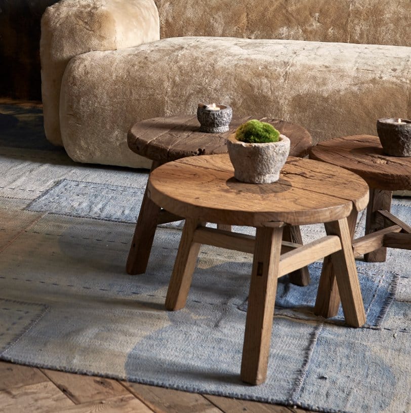 Old wooden cart wheels refashioned as small tables, with a base made from reclaimed timbers found in old Chinese doors. Foraged from traditional village markets, most of our Abode reclaimed tables are made according to simple traditional designs, yet each one is different in some way. They can be used individually or clustered together.