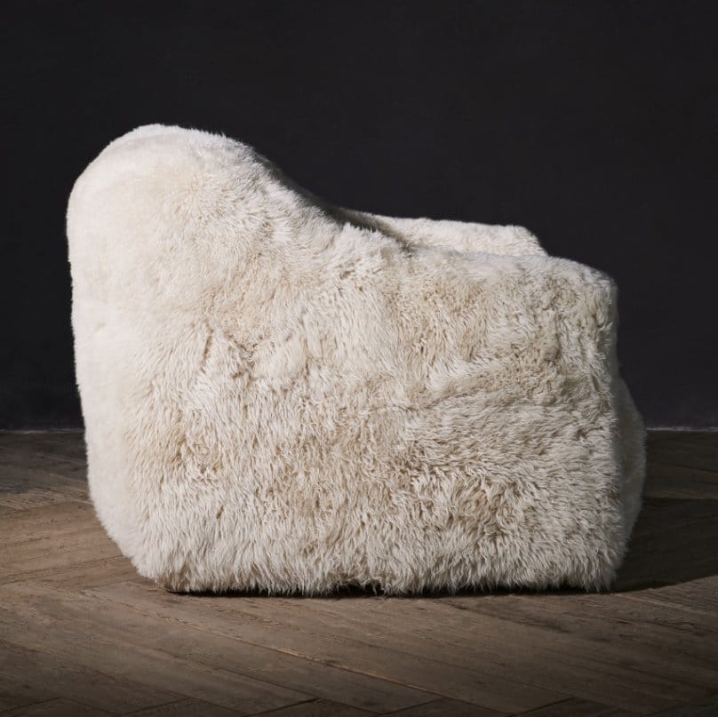 Named after the French word for shepherd, the Bergere chair seems as though it belongs to the land, anchored and rooted to the earth. Clad entirely in pure, natural sheepskin, with exposed timber at the front adding visual contrast. A slouchy back encourages lounging, while the luxuriously thick, deep sheepskin creates a sink-in feeling that is richly evocative to the touch. A rugged look that plays to all the senses, adding texture and warmth to any space.