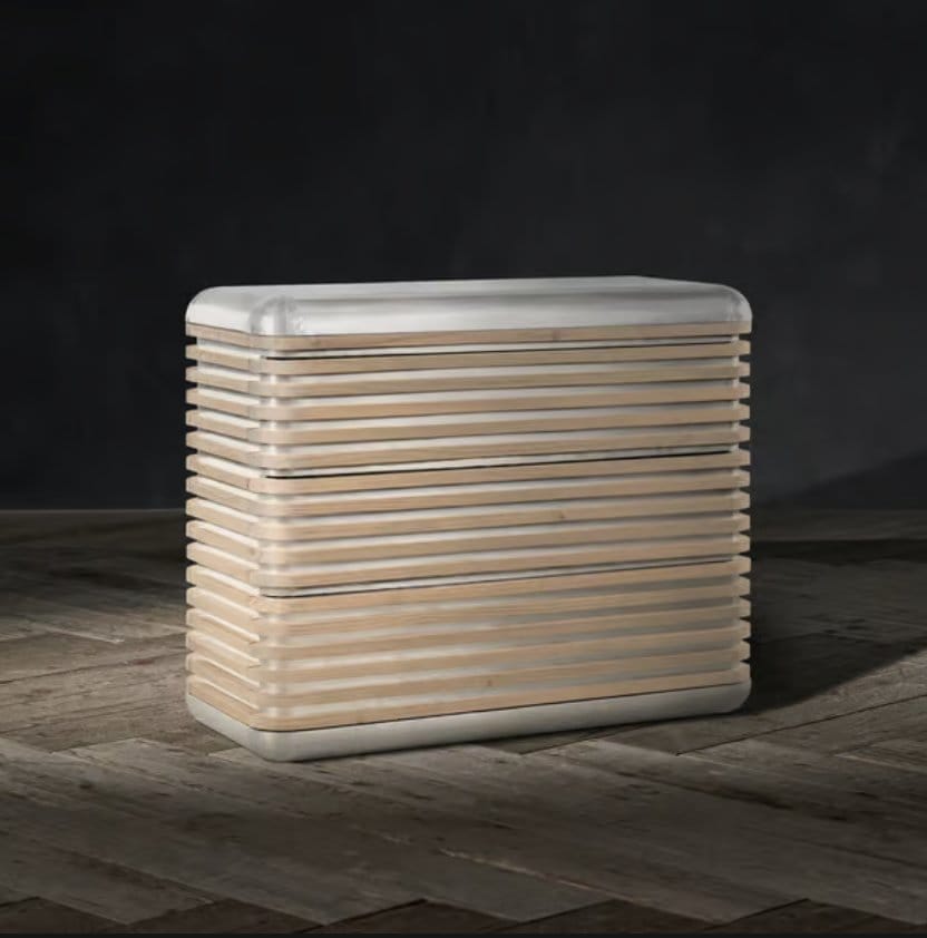 Introducing our coastal-inspired Castaway chest, where brushed aluminium meets beach wood to create a compelling look. Opposites attract as these two diverse materials unite to form objet d’art. Soft rounded corners are contrasted with the calming slatted lines of wood, highlighting the collection’s true beauty.