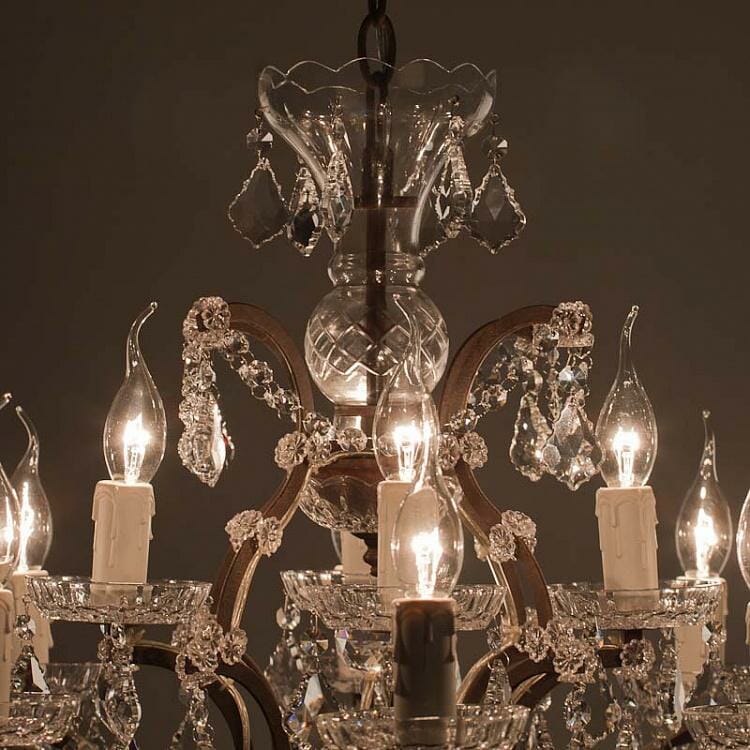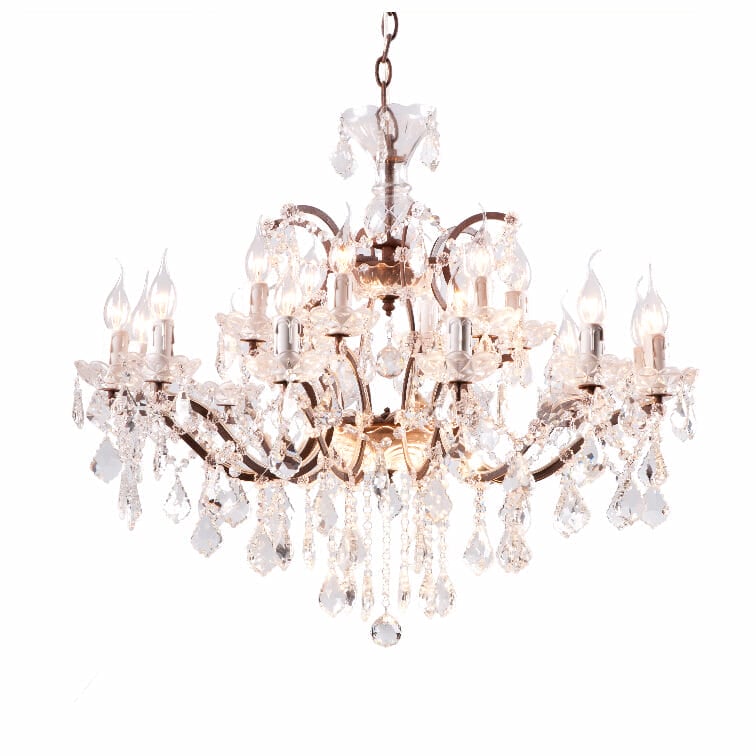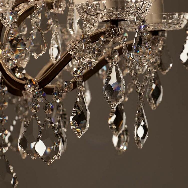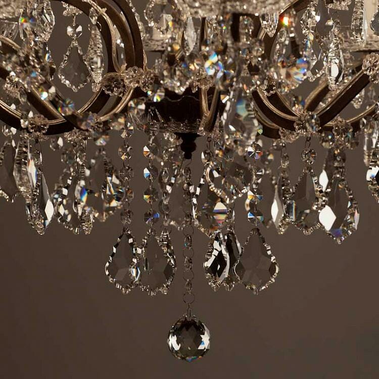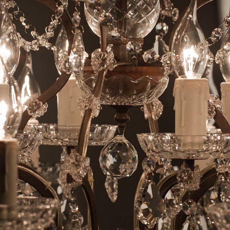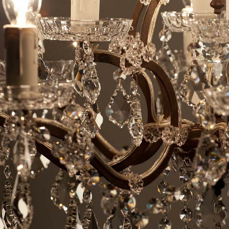 The Crystal lighting collection is inspired by the elaborate designs of late Georgian era chandeliers. This handcrafted range features many hallmarks of Georgian design including large crystal baluster centrepieces, precision cut glass crystals, candle lights and corresponding bobeche dishes originally used to collect candlewax. These elaborate and romantic features are starkly contrasted with the rustic aged metal patina of our proprietary Antique Rust finish to create its uniquely authentic and Timothy Oulton look.
