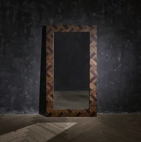 Beautifully striking, the Edwardian mirror is fashioned from reclaimed parquetry oak. Originally forming the floors of Edwardian dancehalls and other buildings in the UK, the timber is over 100 years old, bringing a century of history and character into your home. The reclamation of the wood is a long and arduous journey; each block is carefully removed by hand and cleaned before making its way to our workshop, where craftsmen use meticulous skill to lay each block – by hand – into the distinctive chevron pattern, creating a rustic surface full of personality and charm.