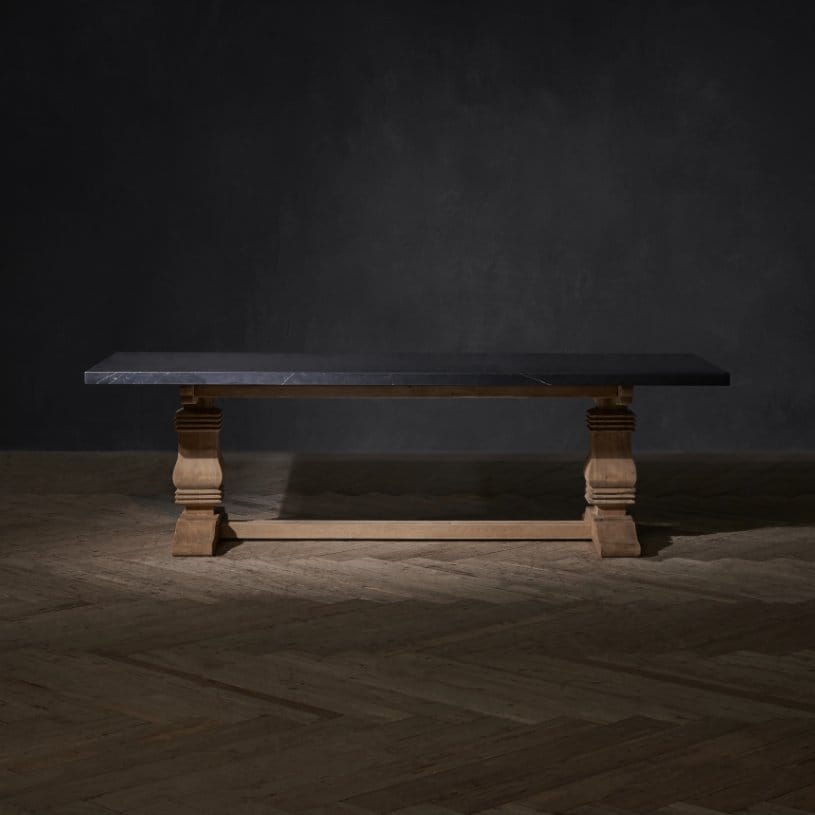 The Georgian Architectural dining table is handcrafted from Genuine English Reclaimed Timber sourced from disused buildings in the UK, sometimes up to 100 years old. Topped with cool, crisp marble to refine the experience, in either black or white. A really warm and welcoming chunky table to anchor the room for casual sit downs or more formal dinner parties. Enjoy great company with plenty of eating, drinking, laughing, arguing and sharing – just as it should be.