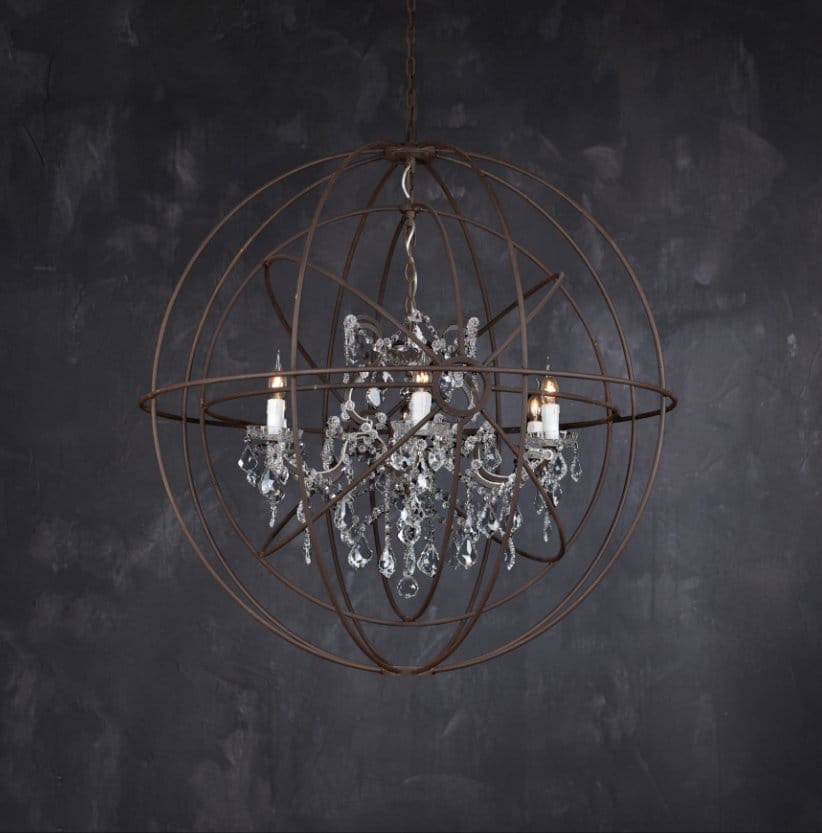 GYRO CRYSTAL DOUBLE CHANDELIER ANTIQUE RUST