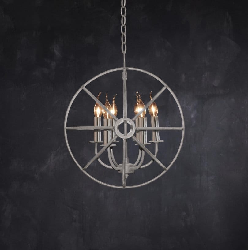 The Gyro pendant is inspired by nineteenth century experimental physicist Leon Foucault’s gyroscope: a device used for measuring orientation. Extracting key elements from the historical instrument such as its multiple axes, the gyroscope has been reinterpreted into a framework of aged metal spheres fixed around a nucleus of candle lights.