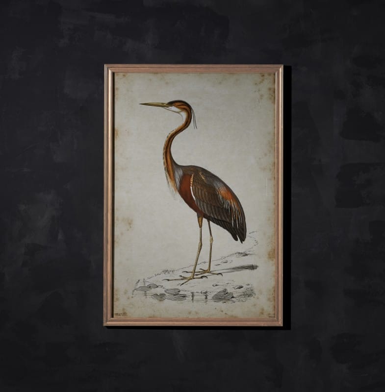 The handsome heron is a long-legged bird who you’ll most likely spot standing at the water’s edge, ready to wade in and catch some lunch with its deliciously long beak. This beady-eyed depiction of one of Britain’s most striking birds is printed on museum quality paper that has been delicately stained for an authentic, aged appearance. Framed in oak finish.