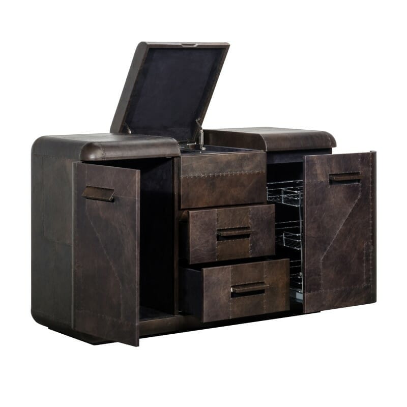 The sensorial Hudson collection houses everything you need for a great night in, whatever the occasion. Understated design adds to its stealth, but its rich textured surface cloaked in a patchwork of Fury leather panels, hints at something special within.
