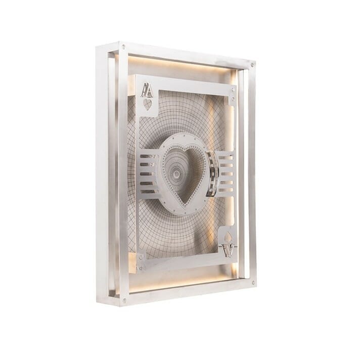 A statement piece for players and risk-takers. The Hustle is lasercut from a sheet of steel for a modern take on the classic playing card graphic. The metal is raised for a 3D effect, and the design is back-lit for added drama. Choose your Ace from each of the four suits; Hearts, Diamonds, Spades or Clubs. The perfect backdrop for a games night with friends.