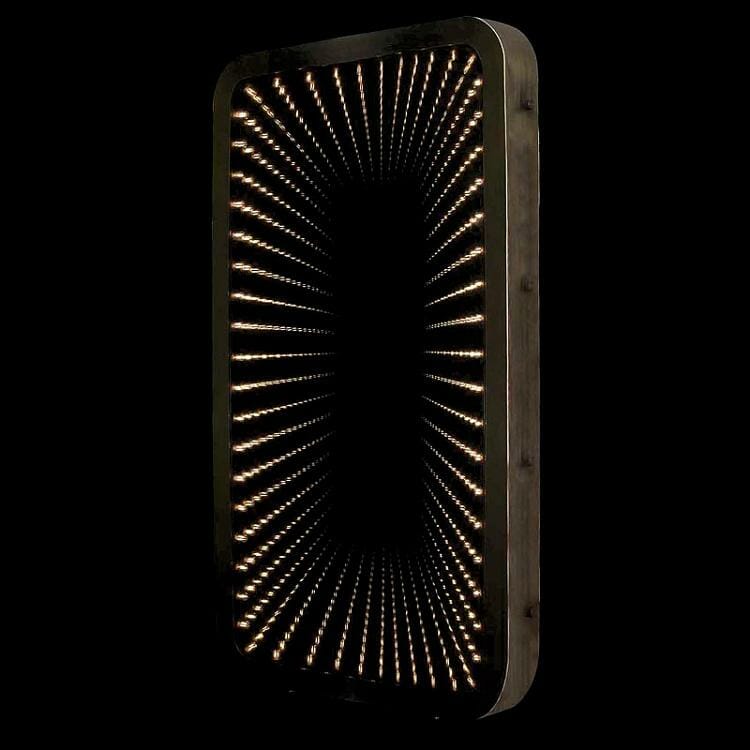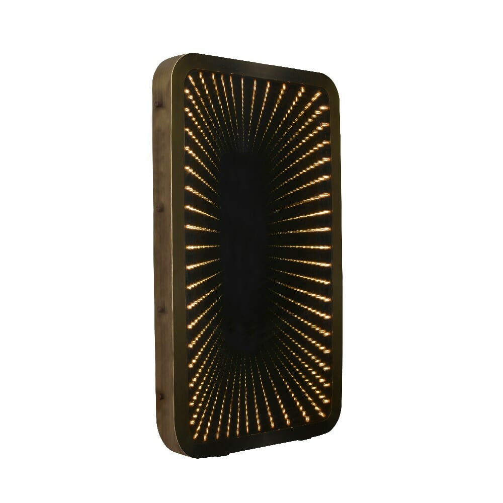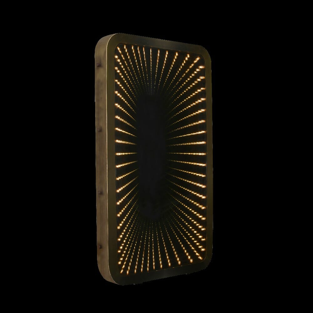 The Inception lights up to reveal a seemingly endless line of reflections, appearing smaller and smaller as they fade into the distance. When it’s turned off, it becomes an elegant everyday mirror, framed in thick Flat Brass. Once turned on, it’s as if a portal has been opened, leading you into another dimension. LED antique bulbs are placed behind the frame for a lighting effect that’s soft and mellow. Handcrafted with the finest detail, the Inception mirror is a spectacular showcase of artistry and drama.