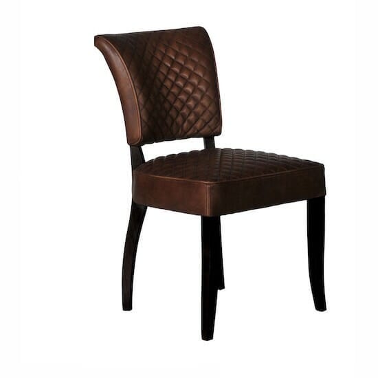 Quilted leather is a classic, from English country jackets to motorbike leathers to vintage bags. The Mimi Quilt dining chair reinvents a classic 1940s French piece, richly clad in quilted hand-softened leather for a modern, textured look. With brass stud detailing and tapered wooden legs, this timeless style has a gently flared back and padded seat for added comfort, so you can chat for hours over dinner with friends.
