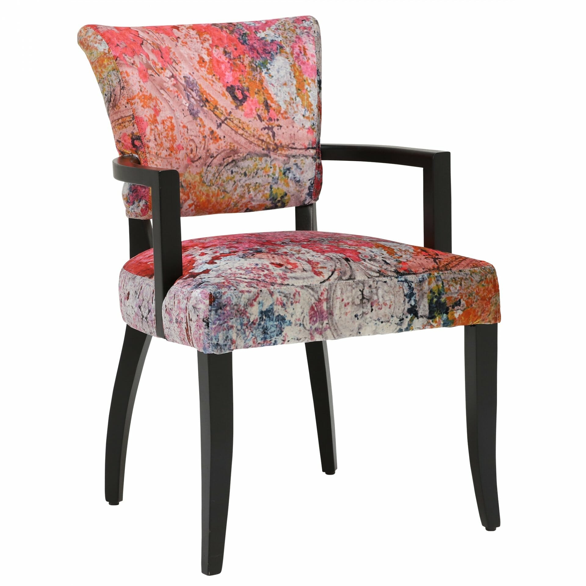 A new extension to our existing Mimi range. The classic flared shape of the Mimi takes a walk on the wild side with the Faded & Degraded velvet with arms collection. From the vibrant pinks of Peeling Ceiling to the more subdued hues of Acid Jungle, these eclectic designs add a fun sophistication to your dining interior. Also available in Mimi Quilt with Arm.