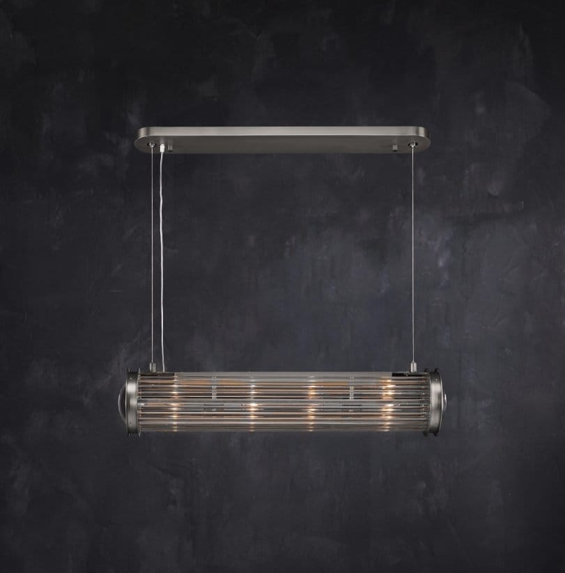 Based on an instrument of astronomy, the Newton pendant fosters thoughts of voyage and discovery. Emulating a treasured vintage collectible, polished glass rods stretch out between two magnifying glass ends, diffusing the light for a gentle luminous glow.