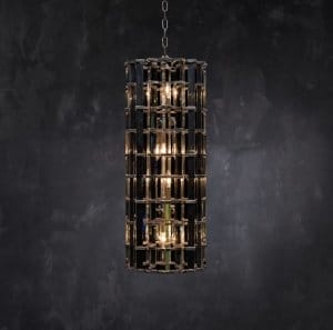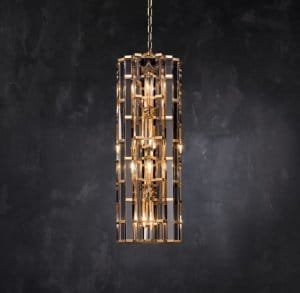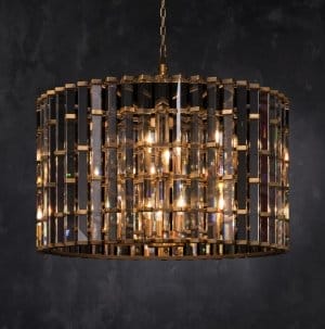 GYRO CRYSTAL RECTANGULAR CHANDELIER ANTIQUE RUST