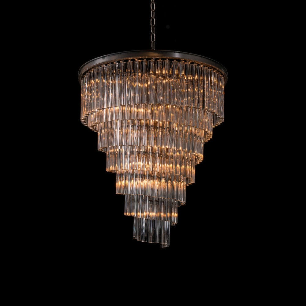 Inspired by the magnificent Odeon buildings in ancient Greece and Rome, originally constructed for musical performances. Traditionally, they had beautifully carved domed roofs for maximum acoustics, with a space in the top for natural light to flood in. The lightメs spiral design mixes architectural elements from the biblical Tower of Babylon with the helix effect of a spiral staircase, bringing ancient drama and modern glamour to a room.