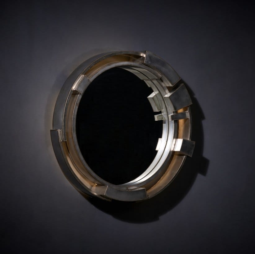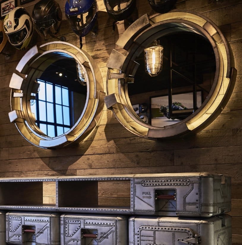 The Rev mirror is inspired by the machine elements of the motorcycling and automotive world, displaying the contrast between the refined and the raw power they possess. The refinement comes from the intricacy and precision of thousands of moving components, synchronised in perfect harmony in a finely orchestrated composition, that then produces the aggressive rumble and raw power which leaves a trail of burnt rubber and a smell of ignited oil in its aftermath. This is the feeling portrayed by the Rev collection, with the giant gears and concentric ring configurations embodying the movement of machine parts. The raw steel in a matt finish coupled with exposed weld marks reflects the authentic craftsmanship in each piece’s fabrication.