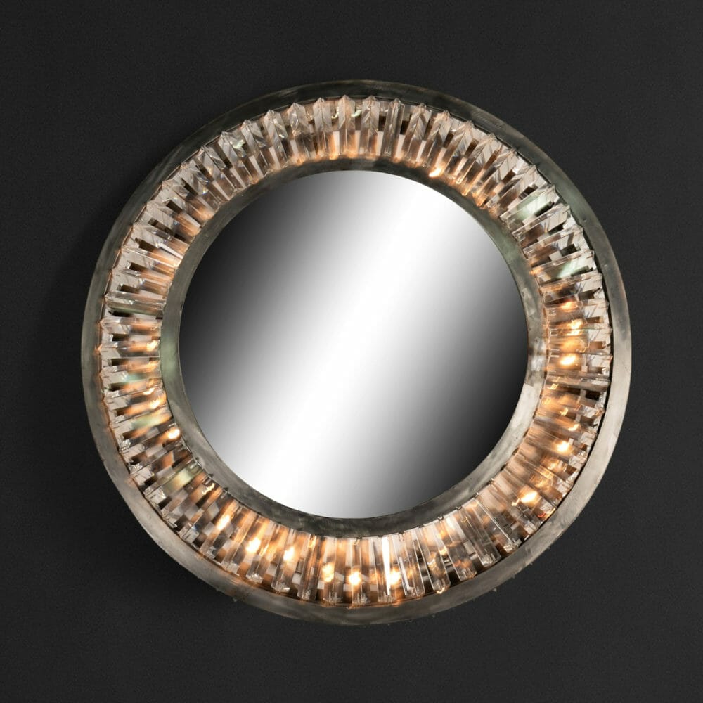Rex juxtaposes its raw iron frame with glowing prisms of optical grade glass, refracting the light in a perpetual dance of shimmer and sparkle. Vintage glamour, recast for today.