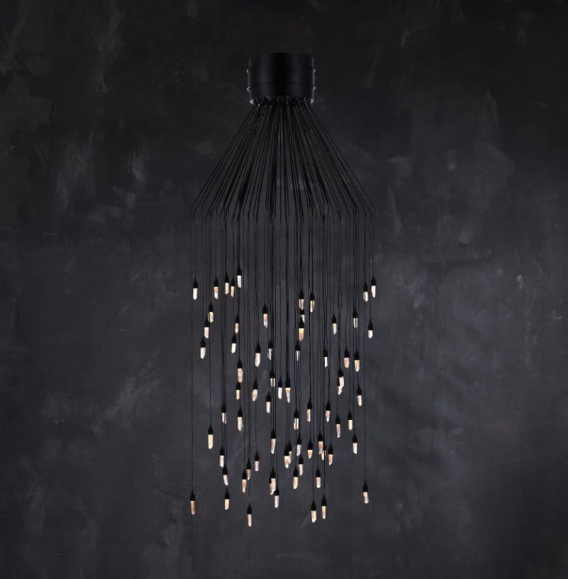 The love of precious stones is deeply ingrained in the human heart, an ancient beauty that remains untouched and constant. The Rock Crystal Rain pendant is exquisitely handcrafted from delicate drops of rock crystal, lightly polished by hand and fixed to individual sockets on the frame so that each crystal is lit. The multi-faceted crystals disperse the light in every direction as it shines through the translucent stone, casting dramatic shapes and shadows on the wall, and radiating a soft and romantic glow. Lightweight in appearance yet voluminous in size, the Rock Crystal Rain pendant makes a spectacular showpiece suspended from high ceilings or above stairwells.