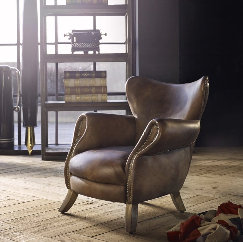 Inspired by the traditional armchairs found in English universities. The Scholar chair has generously curved lines, modern wingtips and distinctive hand-applied brass studding. A favourite chair for strategic thinking or to sit and debate the day.