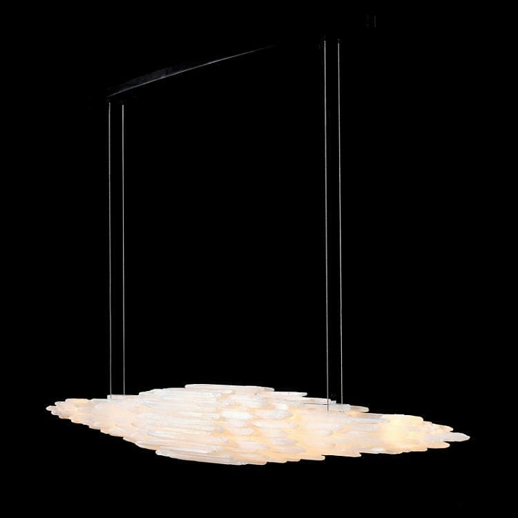 Named after the Greek goddess of the moon, selenite is known for its soft pearlescent glow similar to moonlight. It is the crystalline version of the mineral Gypsum, and is revered by many for its spiritual and protective properties ヨ with some believing it unlocks the chakra of divine wisdom. The oldest Selenite crystal ever discovered was 500,000 years old in Chihuahua, Mexico. Suspended like glistening stalactites, the crystals in our Selenite lighting collection are painstakingly affixed to the frame one by one, with a colossal 557 individual crystals in the large 110cm pendant.