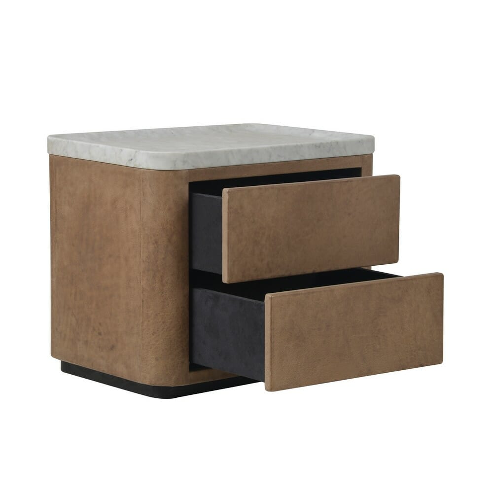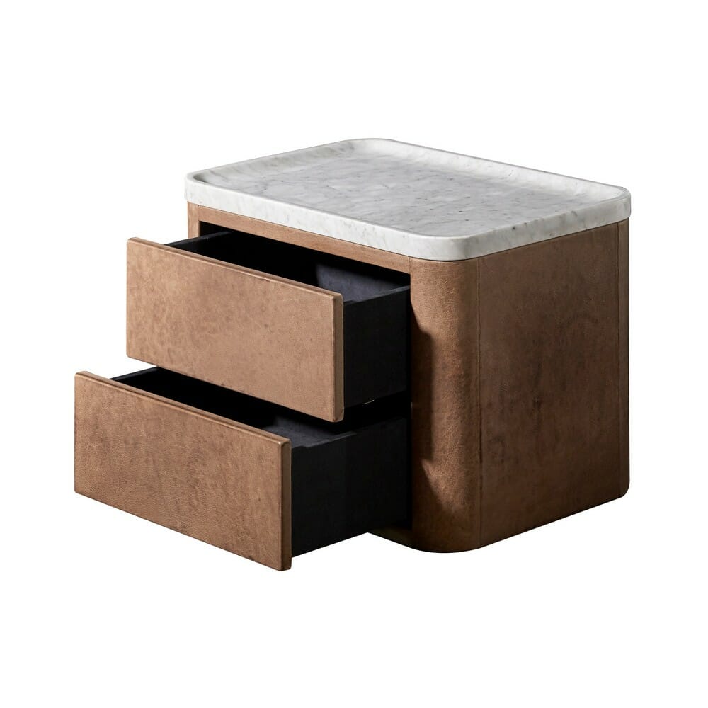 Effortlessly stylish, the sleek and streamlined Shabby bedside table is wrapped in our rich hand-finished leathers and topped with cool, elegant marble. The drawers are push opening to enable smooth movement, and lined in plush black velvet. Available in a wide range of finishes, designed to complement the Shabby bed.