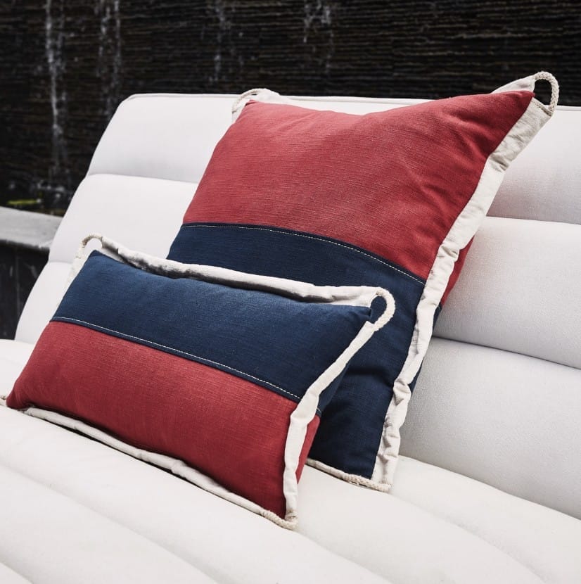 Based on maritime flags from the International Code of Signals, Timothy Oulton’s Signal cushions capture the excitement of sea voyages. The International Code of Signals was established in 1857 as a means of communication to and from ships and is still used the world over, including by most navies. Each flag represents individual letters of the alphabet with one or more letters assigned to various navigational and safety messages. Inspired by six of these flags, each cushion design is hand-dyed on a 100% cotton cover, with the corresponding signal message playfully stitched along the border.