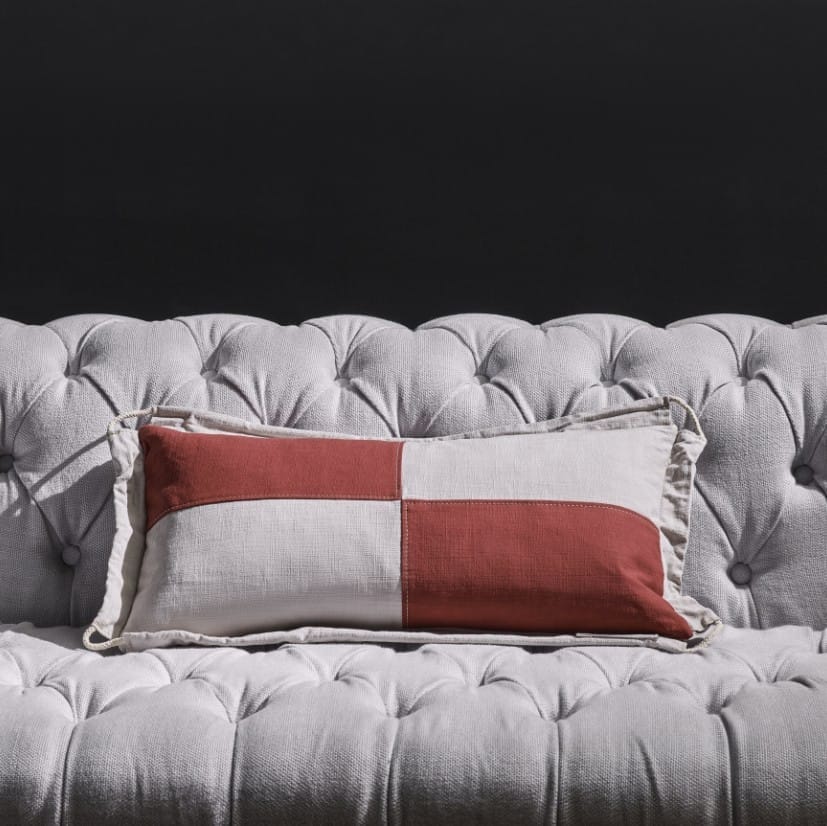 Based on maritime flags from the International Code of Signals, Timothy Oulton’s Signal cushions capture the excitement of sea voyages. The International Code of Signals was established in 1857 as a means of communication to and from ships and is still used the world over, including by most navies. Each flag represents individual letters of the alphabet with one or more letters assigned to various navigational and safety messages. Inspired by six of these flags, each cushion design is hand-dyed on a 100% cotton cover, with the corresponding signal message playfully stitched along the border.
