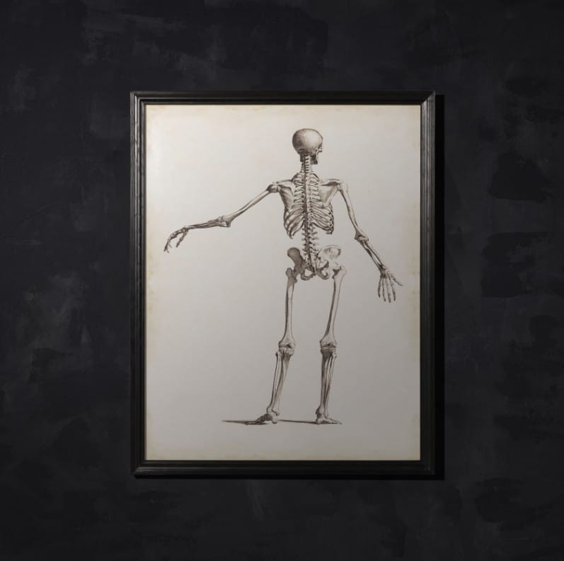 Breathe old life into new spaces with these cheeky skeletons. Taken from an early 18th century lithograph, reproduced and enlarged to show the fine detail of the original. Two designs available – Skeleton Front and Skeleton Back, sold individually.