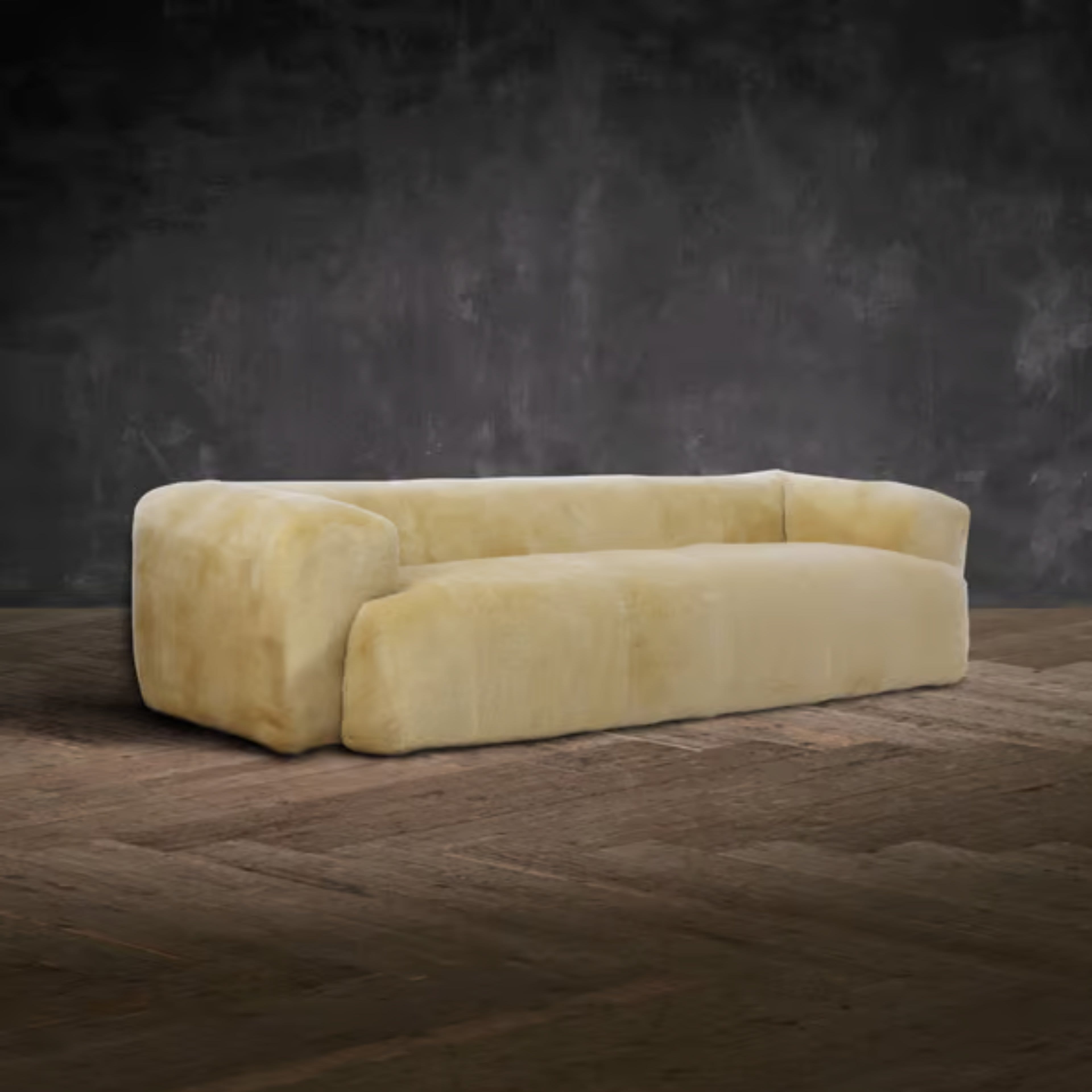 Super soft and super squidgy, just like its namesake. With a soft silhouette and luxuriously thick, deep padding, the Squidgy sheepskin sofa offers an invitation to get comfortable and lose yourself in its sumptuous and curvaceous form. Covered in premium natural sheepskin for an immensely tactile experience, exuding a sense of playfulness. Wide, squared off arms, a low profile and generous proportions maintain Squidgy’s bold and contemporary character.