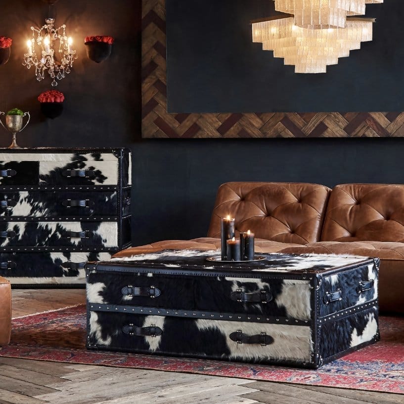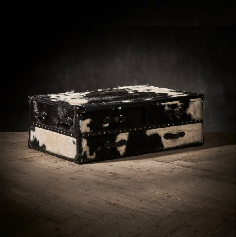 Stonyhurst College was founded in 1593 and remains one of the UK’s most prestigious boarding schools. An adaptation of the Ampleforth collection, which is named after Tim Oulton’s own alma mater, Stonyhurst similarly transforms Timothy Oulton’s travel-inspired trunks into functional furniture. While preserving all the hallmarks of traditional craftsmanship in its construction and detailing, the collection experiments with a range of innovative finishes. All leather finishes, plus the Shiny and Black Steel options and Oxidized Solid Brass, all come with wooden banding. Both the Spitfire and Aero finish come without any banding.