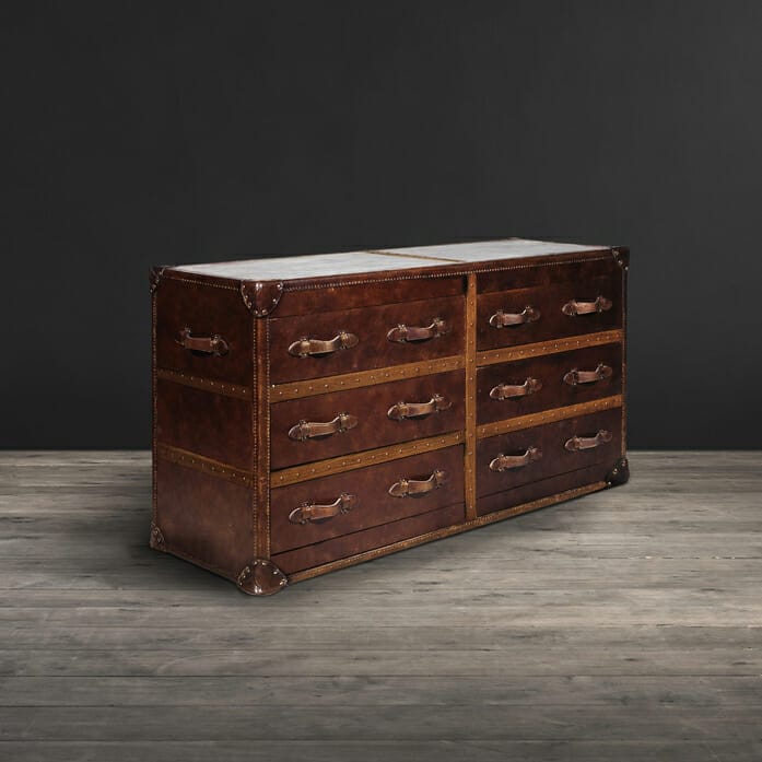 Stonyhurst College was founded in 1593 and remains one of the UKメs most prestigious boarding schools. An adaptation of the Ampleforth collection, Stonyhurst similarly transforms Timothy Oultonメs travel-inspired trunks into functional furniture. While preserving all the hallmarks of traditional craftsmanship in its construction and detailing, the collection experiments with a range of innovative finishes including the celebrated Spitfire finish. Unlike the Ampleforth, the Stonyhurst does not include a lift-up lid.