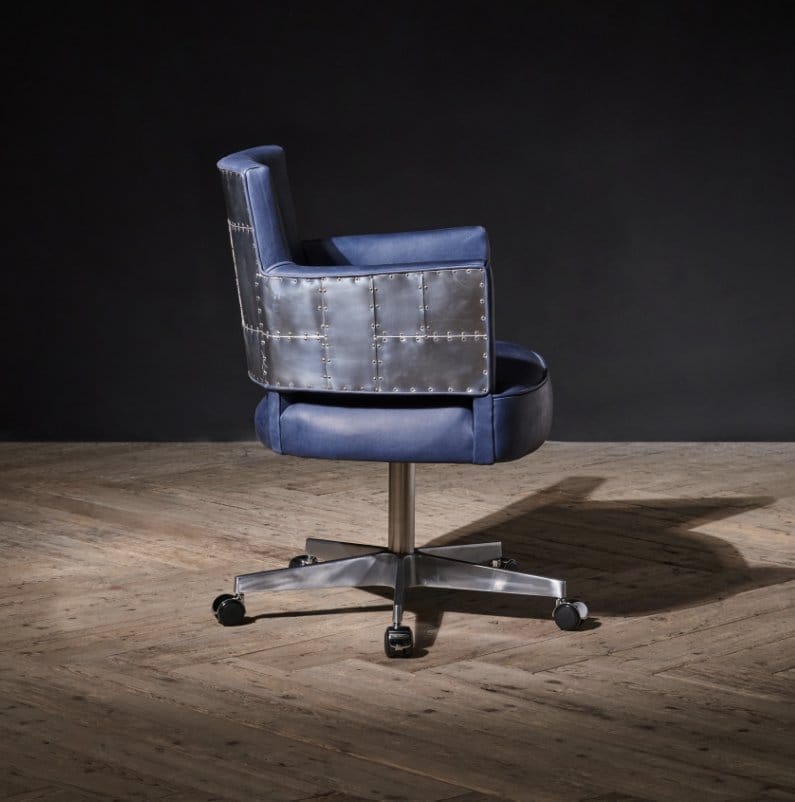 Elevate your working day with the Swinderby swivel office chair, wrapped in our signature Spitfire finish across the arms and back, with castors for easy manoeuvrability. A classic yet cutting-edge office or dining chair, the Swinderby is clad for comfort in our range of unrivalled leathers – hand-finished to achieve a vintage look and feel. Also available in a choice of linens and velvets.