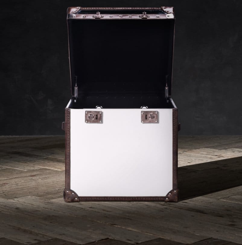 A larger version of our London trunk, White Star is similarly inspired by the charm and romance of a past era of long, luxurious, sea voyages. Embodying the traditional detailing and craftsmanship that defines every trunk collection, the White Star Trunk features the finest sprung locks, hand-finished solid wood trims, and hand-applied studs. The piece is infused with a contemporary edge through its fabrication and finishing – from hand-painted leather and cowhide to brushed steel and distressed glass.